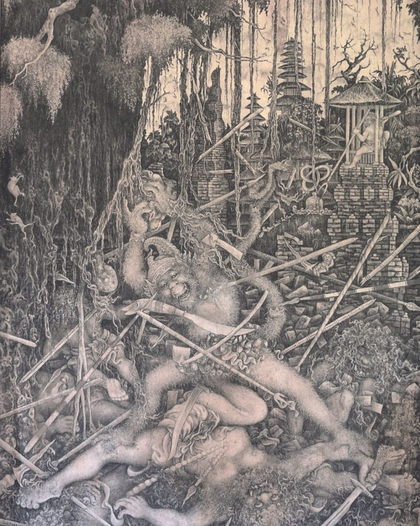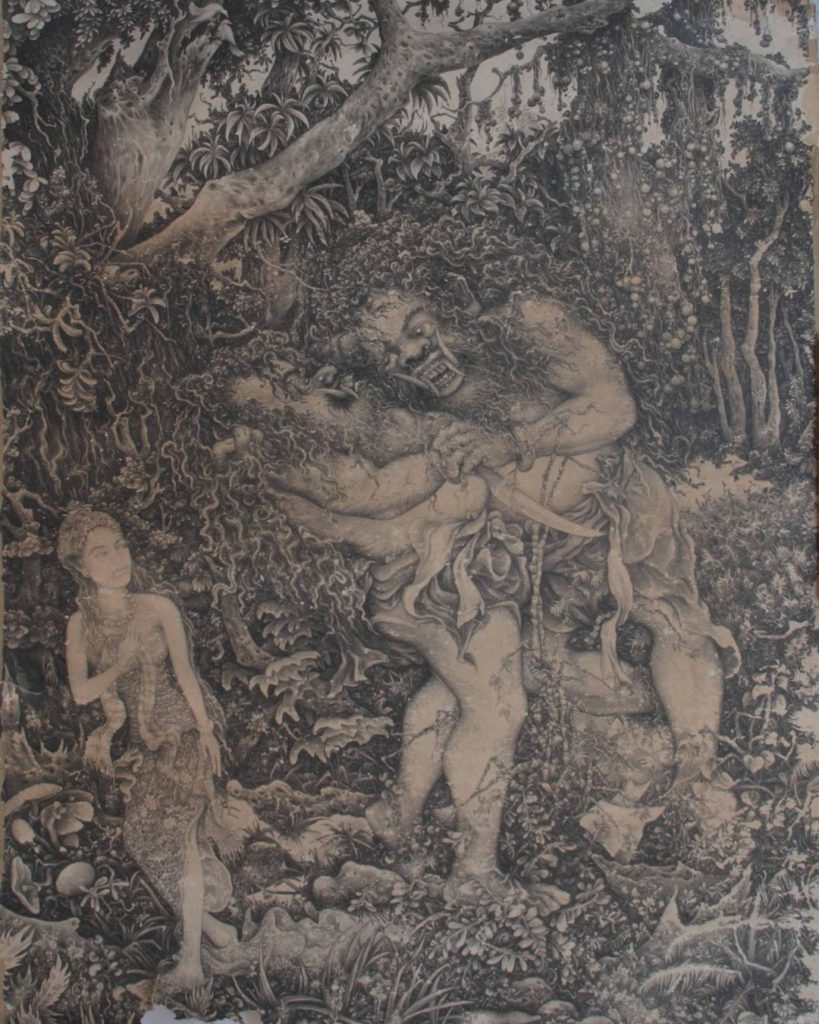 I Gusti Made Deblog, Sunda Upasunda, 115cm x 75cm, Tinta Cina pada Kertas, 1940
